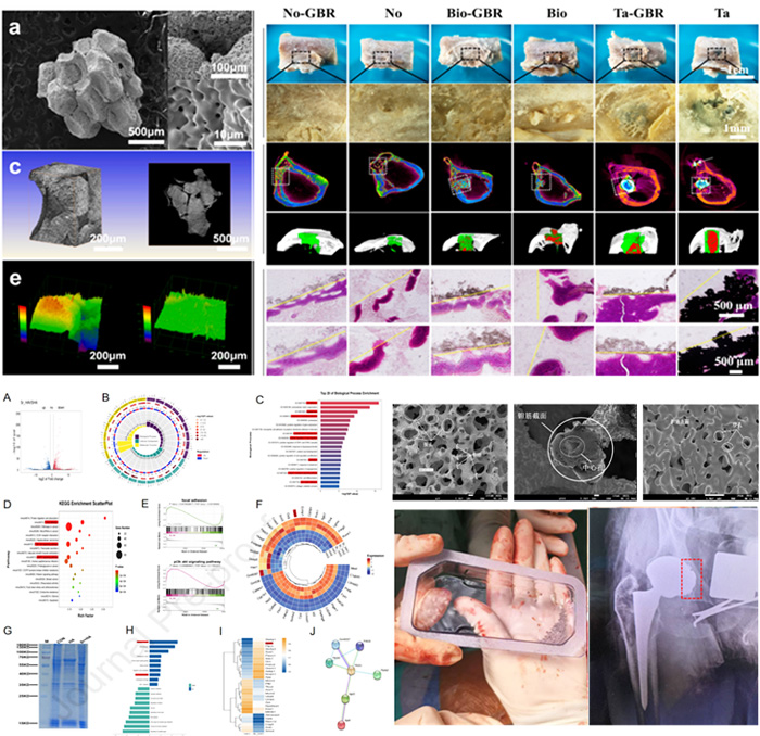 近期,該團(tuán)隊(duì)對(duì)多孔鉭材料體系的相關(guān)成骨機(jī)理進(jìn)行了深入研究,基因測(cè)序結(jié)果顯示該材料體系能對(duì)機(jī)體內(nèi)1829個(gè)關(guān)鍵基因造成顯著影響,尤其可通過(guò)上調(diào)整合素α6(Itga6)的表達(dá),激活PI3K/AKT信號(hào)通路,顯著促進(jìn)成骨基因(如RUNX2、ALP、OPG)的表達(dá),最終增強(qiáng)成骨細(xì)胞的分化與礦化能力。相關(guān)成果發(fā)表于《Materials Today Bio》。